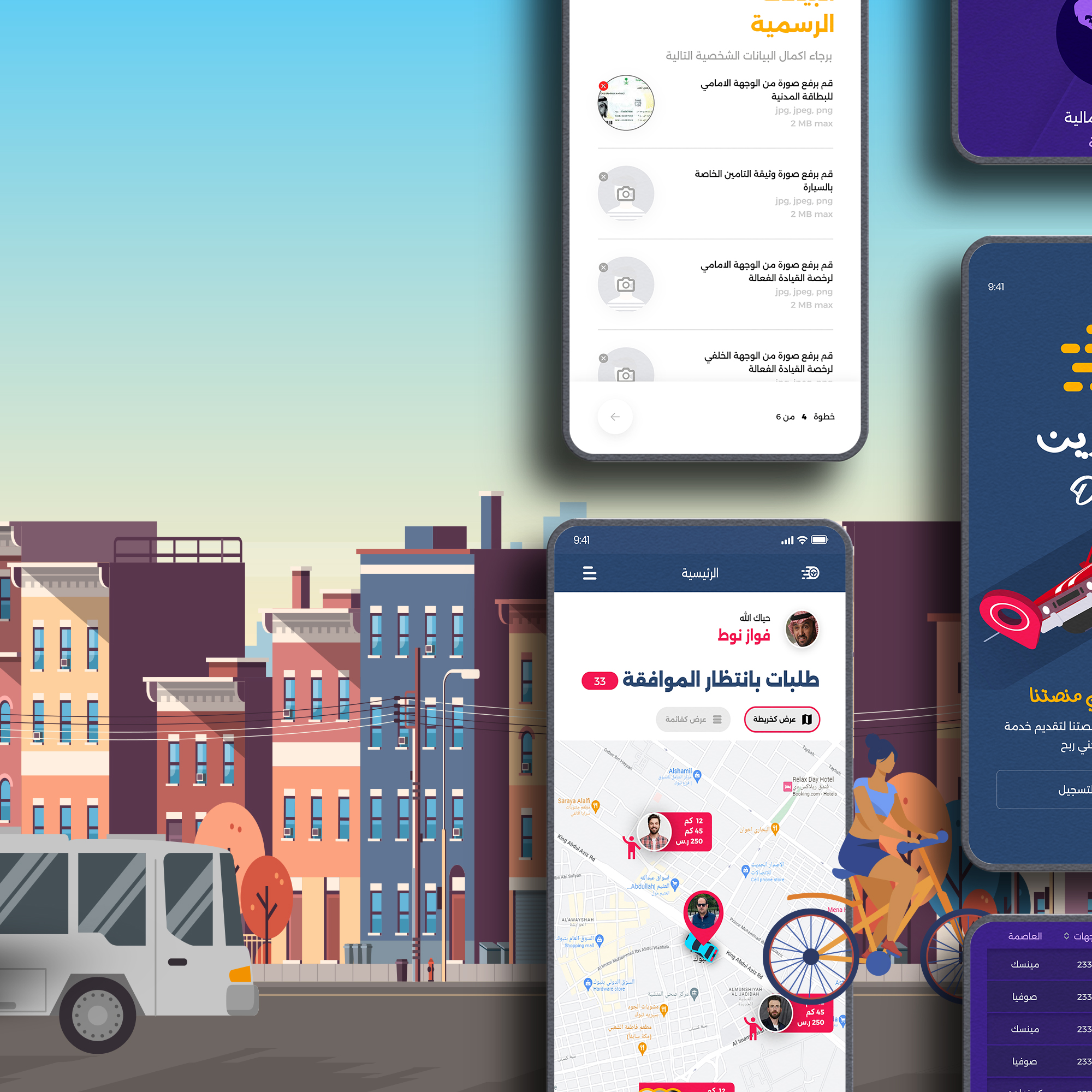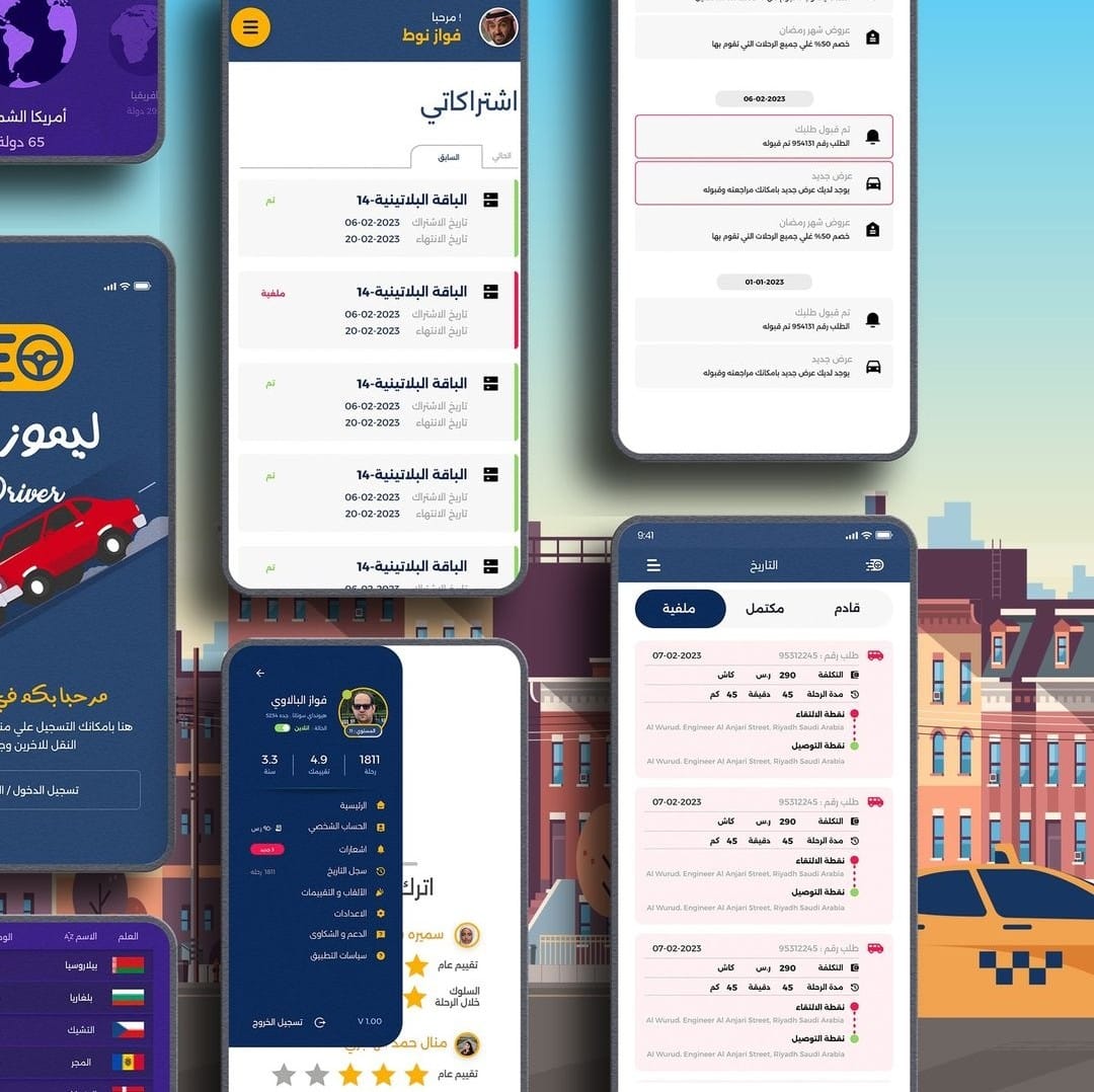 تطبيق للربط بين سائقي سيارات الاجرة والركاب حيث يمكن للمستخدم طلب مشوار وتحديد نقطة الانطلاق والوصول ومن ثم يقوم احد السائقين بقبول الطلب اتمامه